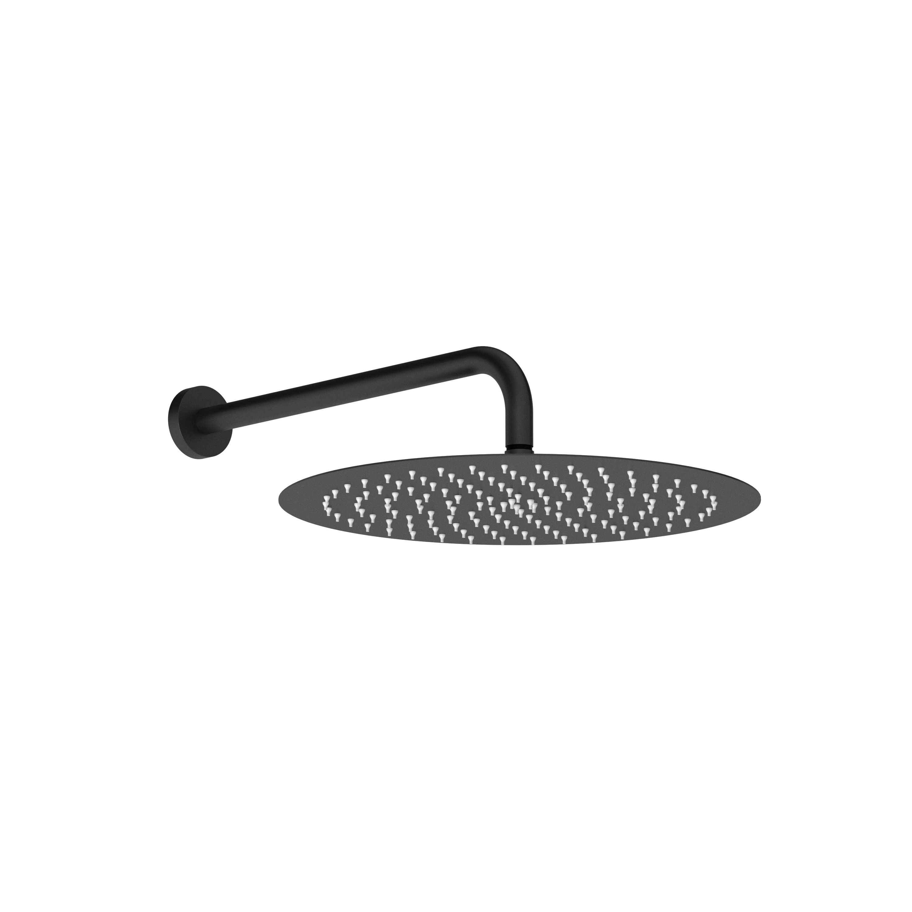 Shower head code: 430.01-CI (chrome) | 430.01-NI (black) Shower arm code: B-440-CI (chrome) | B-440-NI (black) 12'' round shower head (0.6 mm thickness) + 400 x 20 mm shower arm